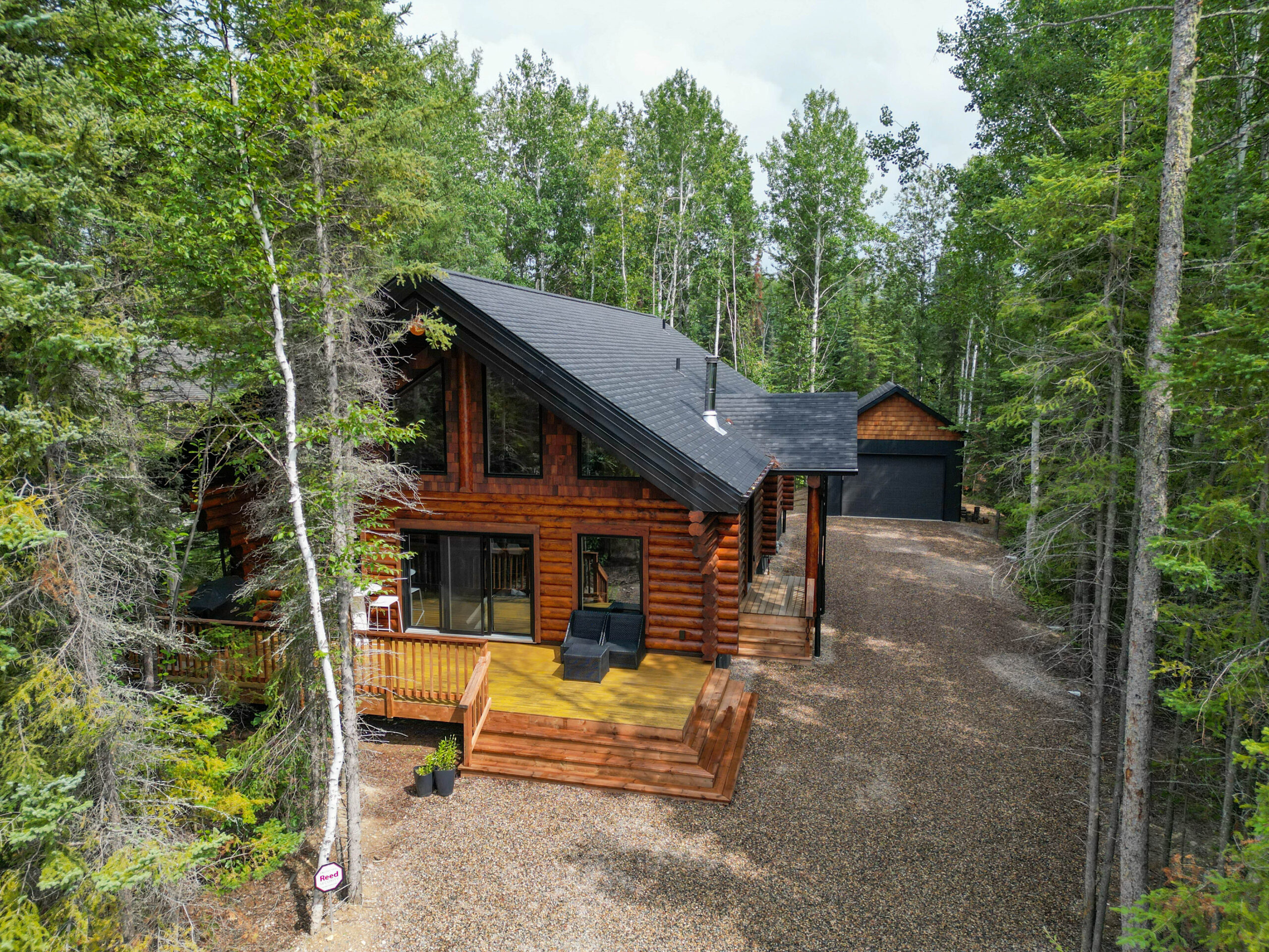 This 1,500 square foot cabin is crafted from 10″ milled white spruce logs and designed for comfortable four-season living. Featuring exterior log truss work, an interior log post and ridge beam, and a well-planned layout with four bedrooms and two bathrooms, it blends strength, warmth, and functionality.